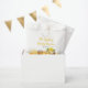 The back background of the design features a cheerful pattern of yellow and white gingham checks, reminiscent of picnic blankets and sunny days in the countryside. It adds a touch of nostalgia and whimsy, setting the perfect ambiance for a joyful celebration.