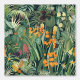 Immerse your space in nature's beauty with this Lush Botanical Peel & Stick wallpaper. This vibrant design features an intricate array of tropical plants and flowers in rich greens, accented with bright oranges, yellows, and pinks. The detailed botanical elements create a stunning, dense jungle scene that brings a touch of the exotic indoors. Perfect for adding a bold statement to any room, this removable wallpaper is easy to install and remove, making it ideal for a living room, bedroom, or office. Transform your walls into a lush, tropical paradise with this exquisite wallpaper.