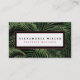 Professional business card featuring an elegant lush botanical tropical palm tree leaf design. Custom name and titled presented in complimentary black and white frame with pink accents. The back of the card is complimentary to the front with name, email address and contact information presented in coordinating typography.