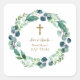 Lush Eucalyptus Greenery Wreath Gold Cross Baptism Square Sticker