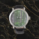 Stylish men's wrist watch with white numerals that features the photo image of a lush, evergreen, conifer forest in the Pacific Northwest. Select your watch from several styles.