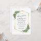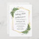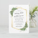 Luscious fern details in shades of earthy green adorn a gold geometric double frame in this pretty wedding suite. Fronds of ferns in two corners are interwoven with the gold tone faux metal hexagon tube frames with with text in charcoal grey and a subtle coordinating leafy fern plant pattern on the back.