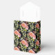 Beautiful pink and red watercolor flowers and elegant greenery on a black background highlight these ribbon closed wedding bridal shower tent style party favour boxes. MATCHING items in our store.