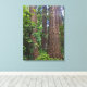 Wrapped canvas print that features the photographic image of an evergreen forest with tall Douglas fir trees and lush, green plants. Customise your canvas size as desired along with frame options.
