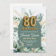 Celebrate a milestone surrounded by nature’s beauty with this elegant design! A golden "80" shines amidst a vibrant array of green leaves and delicate floral accents, making this invitation ideal for an 80th birthday celebration. Personalise it with your name, age, and event details to create a floral-inspired keepsake. It’s a graceful way to invite guests to a day of joy and remembrance!