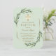 Elegant card design featuring watercolour laurel branches, a faux gold frame, on a light green background. Use Personalise tool to add your info, change fonts, font's colours. For matching items, please, visit my New Baptism/Christening Celebration Collection.