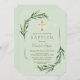 Lush Greenery Gold Cross Boy Baptism Invitation