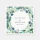 These lush greenery wreath wedding paper napkins are perfect for an elegant backyard wedding reception. The modern botanical design features gorgeous watercolor blue eucalyptus and green leaves. Personalise the napkins with the names of the bride and groom, and the wedding date. These napkins can be used for the wedding reception, rehearsal dinner, engagement party and more!