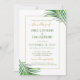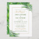Our unique modern tropical leaf wedding invitation features a gold geometric border and elegant typography inside a lush grouping of green palm fronds. It's perfect for a beach destination or island wedding in the tropics.