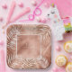 A trendy colour palette in shades of terra cotta, copper and rust; sparkling geometric frames and elegant design layouts, provide the basis for this exciting wedding suite. Whether you're planning a destination wedding or staying close to home, this delicate palm leaf design set makes an eye-catching choice. The coordinating paper plate shown here provides a template to easily add your initials, names and wedding date. Search ID956 to see other pieces and colour choices for this set.