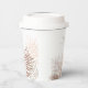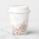 A trendy colour palette in shades of terra cotta, copper and rust; sparkling geometric frames and elegant design layouts, provide the basis for this exciting wedding suite. Whether you're planning a destination wedding or staying close to home, this delicate palm leaf design set makes an eye-catching choice. The coordinating paper cup shown here on a white background, provides a template to easily add your initials, names and wedding date. Search ID956 to see other pieces and colour choices for this set.