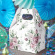 A beautiful all-over pattern of lush watercolor pink peonies and greenery favour box.