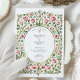 Step into an enchanted garden with this breathtakingly romantic wedding invitation. Inspired by the timeless beauty of the Arts and Crafts movement, this design features an intricate and lush watercolor border of delicate pink roses, buds, and gracefully weaving green vines. The dense, symmetrical pattern creates a magical tapestry reminiscent of a classic fairytale. A simple, elegant circular frame in a soft olive hue provides a perfect window for your personalised wedding details, which are displayed in a sophisticated mix of classic and script fonts. This invitation is an exquisite choice for a romantic garden, vintage, or fairytale-themed wedding, setting a tone of enduring elegance and beauty for your special day.