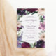 Watercolor flowers in shades of rich burgundy, gentle lilac, deep eggplant purple and pinkish orchid pair with modern green botanicals such as ferns and eucalyptus in these romantic, elegant boho bridal shower invitations.