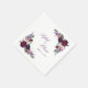 Watercolor flowers in shades of rich burgundy, gentle lilac, deep eggplant purple and pinkish orchid pair with modern green botanicals such as ferns and eucalyptus in these romantic, elegant wedding napkins.