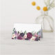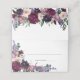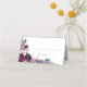 Watercolor flowers in shades of rich burgundy, gentle lilac, deep eggplant purple and pinkish orchid pair with modern green botanicals such as ferns and eucalyptus in these romantic, elegant boho wedding place cards.