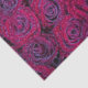 Vibrant purple rose bouquet with water droplets on lush tissue paper.