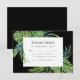 This design features watercolor tropical foliage, including lush, green monstera and palm leaves, surrounding a rectangular white frame on a black background. Personalise it with your choice of wording in black sans serif font. The reverse side is solid black.