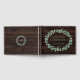 Modern design featuring watercolour eucalyptus branches wreath, on wood barn background; on the back initials and greenery divider round eucalyptus frame. Use Personalise to add your info. For matching items, please, visit my Eucalyptus Greenery Collection.