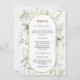 Lush White Flowers and Gold Leaves Menu Invitation. An elegant invitation that combines the simplicity of white flowers with the allure of geometric gold details, perfect for weddings and special occasions that call for a touch of beauty and grace.", it is easy to customise to match your wedding colours.