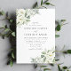 Elegant, botanical wedding invitation featuring your wedding details front and centre with bouquets of painted white gardenia flowers, sprigs of baby's breath, sage green fern leaves, and vibrant green leaves at the corners. This white floral wedding invitation is perfect for garden weddings and spring or summer weddings.