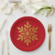 Lux Gold Foil Snowflake Solid Red Christmas Party Paper Plate.