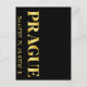 Postcard features Prague, Czech Republic latitude and longitude map coordinates, shown vertically in gold fonts on black background.