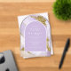 This custom design featuring an alcohol ink abstract in shades from soft lavender to lilac purple with glittering gold accents, is perfect for a romantic and elegant wedding theme. The arch-shaped transparent acrylic wedding invitation shown here provides a template to easily add your own names, wedding date and event details. Search ID990 to see other pieces in this coordinated wedding set.