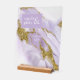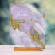 This custom design featuring an alcohol ink abstract in shades from soft lavender to lilac purple with glittering gold accents, is perfect for a romantic and elegant wedding theme. The acrylic wedding sign shown here features unique 'Cards & Gifts' text and provides a template to easily add your initials, wedding date and thank you message. Search ID990 to see other pieces in this coordinated wedding set.