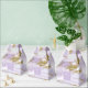 This custom design featuring an alcohol ink abstract in shades from soft lavender to lilac purple with glittering gold accents, is perfect for a romantic and elegant wedding theme. The matching favour box shown here provides a template to easily add your own initials, wedding date and thank you message. Search ID990 to see other pieces in this coordinated wedding set.