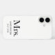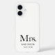 This elegant, minimalist phone case says "Mrs." in a modern, high-fashion luxury font in black and white, and also has a spot for your last name and wedding date.
