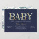 Whether you can't gather for a party due to coronavirus social distancing guidelines, or long distance family and friends are just too far away, this beautiful Baby Shower by Mail invitation will allow loved ones to celebrate your new baby from anywhere. This elegant design features faux gold foil typography with delicate watercolor florals on a navy blue background. Use the design tools to add your virtual baby shower details or customise to suit your event.