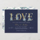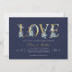 Affordable custom printed couples shower invitations personalised with your party details. This elegant design features faux gold foil LOVE typography with delicate watercolor florals on a bold navy blue background. Use the design tools to customise the text, edit the fonts and colours or add your own photos to create a classy and stylish wedding shower invitation.