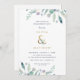 Affordable custom printed wedding engagement party invitations personalised with your event details. This elegant design features a faux gold foil ampersand with delicate blue and green watercolor foliage on a white background. Use the design tools to customise the text, edit the fonts and colours or add your own photos to create a classy and stylish party invitation.