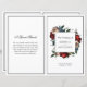 This elegant floral wedding program has luxurious mixed flowers including roses, peonies and other mixed stems in rich shades of red, burgundy, pink, blue, and green forming a square frame surrounding the bride and groom's names. A text template has been created for this design that includes your order of service, the names of the wedding participants, and a special sample note of thanks on the back of the program. You can add or remove lines of text as needed to accommodate your desired text. Edit the text template with your details, then choose "click to customise further" to move text as needed or make further edits. Please note, this item is printed on flat paper that you will need to fold.