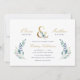 Affordable custom printed wedding invitations personalised with your event details. This elegant design features a faux gold foil ampersand with delicate blue and green watercolor florals on a white background. Use the design tools to customise the text, edit the fonts and colours or add your own photos to create a classy and stylish wedding invitation.