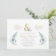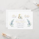 Affordable custom printed wedding invitations personalised with your event details. This elegant design features a faux gold foil ampersand with delicate blue and green watercolor florals on a white background. Use the design tools to customise the text, edit the fonts and colours or add your own photos to create a classy and stylish wedding invitation.