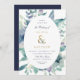 Affordable custom printed wedding invitations personalised with your event details. This elegant design features a faux gold foil ampersand with delicate blue and green watercolor foliage on a white background. Use the design tools to customise the text, edit the fonts and colours or add your own photos to create a classy and stylish wedding invitation.
