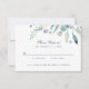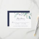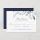Affordable custom printed wedding RSVP cards with simple boho watercolor greenery. Personalise the design with your wedding RSVP info. Use the design tools to customise the text, choose any background colour and edit the fonts and colours to create your own unique wedding reply card design. Reverse side features a navy blue background or use the space to add additional text or photos if needed. This beautiful modern botanical design is perfect for any season.