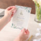 Affordable custom printed wedding invitations personalised with your event details. This elegant design features a faux gold foil ampersand with delicate blue and green watercolor foliage on a white background. Use the design tools to customise the text, edit the fonts and colours or add your own photos to create a classy and stylish wedding invitation.