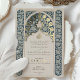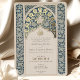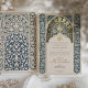 Embrace the exquisite beauty of Islamic art with this luxurious wedding invitation, perfect for couples who appreciate the intricate designs and cultural richness of Islamic calligraphy and patterns. The front of the invitation features a captivating deep navy blue and cream lace design, elegantly framing a central arch inspired by Islamic architecture. This arch encloses a delicate gold foil accent that adds a touch of opulence to the design. The back side complements the front with a continuation of the ornate lace pattern, offering a seamless visual experience. The use of cream and navy blue, enriched with gold foil details, creates a sophisticated and culturally significant aesthetic that is sure to impress your guests.