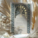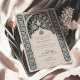 Islamic art is renowned for its emphasis on aniconism and features intricate geometric patterns, calligraphy, and vegetal motifs, known as arabesque. This type of design often includes features such as muqarnas and intricate tilework, which are interpreted in this invitation design. The use of gold foil is reminiscent of traditional Islamic manuscripts and artwork, adding a luxurious element that honours the art's history and cultural significance.