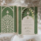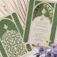 Islamic art is renowned for its emphasis on aniconism and features intricate geometric patterns, calligraphy, and vegetal motifs, known as arabesque. This type of design often includes features such as muqarnas and intricate tilework, which are interpreted in this invitation design. The use of gold foil is reminiscent of traditional Islamic manuscripts and artwork, adding a luxurious element that honours the art's history and cultural significance.