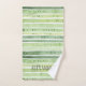 This trendy and stylish bath towel set features watercolor green leaves, with your initial and name, and coordinating green watercolor stripes.