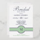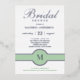 Create your own chic bridal shower invitations with this classic monogrammed design in sage green and silver foil on crisp white. Simple to customise, this design mixes fonts in a simple layout that leads to a trendy yet timeless feel. The bottom band and round seal design in pale green edged in real silver foil at the bottom highlights the bride's first initial in a simple serif font, while the additional slightly darker green text beneath further grounds the design and adds interest. No matter what the wedding theme may be, these classic green with silver bridal shower invitations will set the tone for a beautiful shower for a beautiful bride. Easy to personalise, these real foil silver bridal shower invites can be viewed in the rose gold and gold foil options as well so you can find the perfect combination for your classic custom bridal shower invitations.
