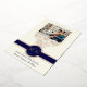 Send out these luxury Save The Date flat cards personalised with your photo in this classic ivory, navy blue and rose gold design and announce your wedding date with a splash. Simple to customise, this navy blue band and seal motif edged in real rose gold foil highlights the bride and groom's first initials in foil over a lighter blue ampersand for a classic look. Upload your one photo where it will appear on each Save The Date announcement edged in a thin border of rose gold foil. The simple text layout is made modern with the mix of script, serif and sans serif fonts for interest. The touch of navy blue text at the bottom beneath the round monogram seal further grounds the stylish design and completes these simple yet elegant custom Save The Date cards.
