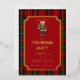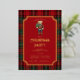 This red tartan party invitation has a cute preppy bear with a sweater you can personalize with your initial. All the party details and the notched frame are in gold foil. The back features a coordinating red tartan pattern.