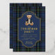 This preppy blue tartan party invitation has a cute sitting bear holding a gift. All the party details and the notched frame are in gold foil. The back features a coordinating blue tartan pattern.