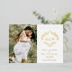 Set the tone for your luxe wedding with this Real Gold Foil Monogram Leaf Wreath Crest Save the Date Photo Card. Personalise it with your favourite engagement photo to delight your guests with a picture of your joy. Customise the full names of the bride and groom, monogram initials, wedding date, and wedding website (optional). Stand out and be memorable, sharing your style and glamour.