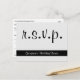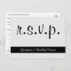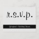 This elegant RSVP postcard design features the message "r.s.v.p." on the front, along with a customised event/occasion description. It also features a custom RSVP form on the back, along with a custom address that the completed RSVP cards would be mailed to. RSVP cards like this could perhaps be used to find out who will be attending a retirement party, a graduation party, a wedding reception, or some other event.